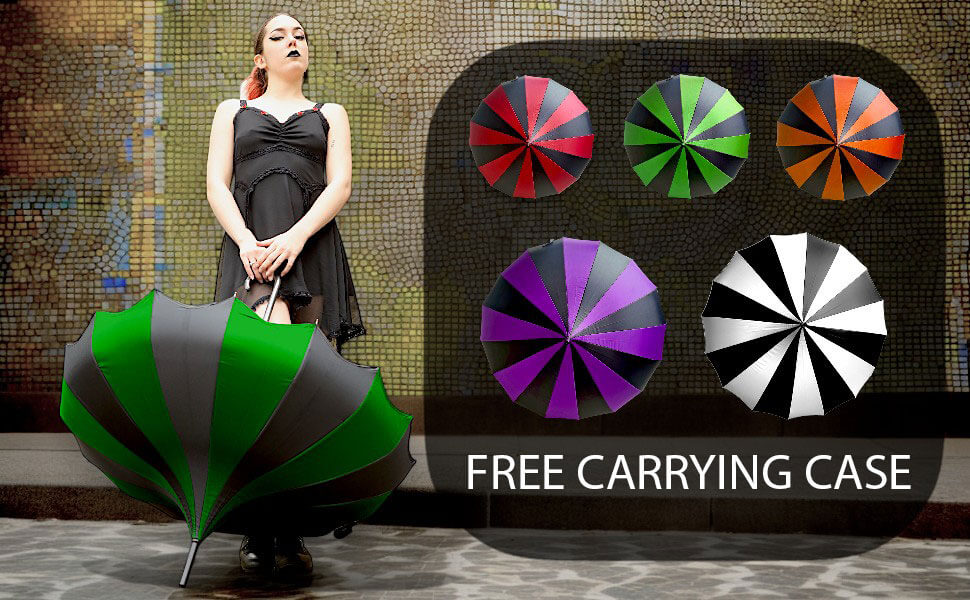 Whether you’re accessorizing for Halloween or expressing your goth style year-round, this umbrella is your perfect ally. Against a white backdrop, it stands out as an artifact of night – sleek, black, and dramatic. The traditional J-handle promises comfort in your grip and ease when hung by your side.