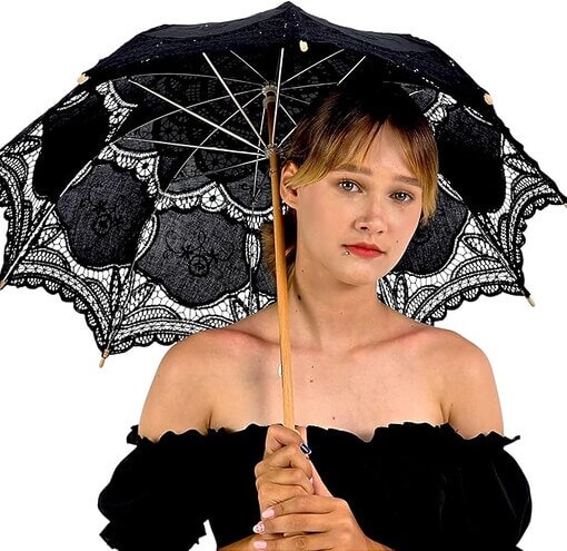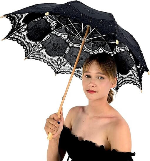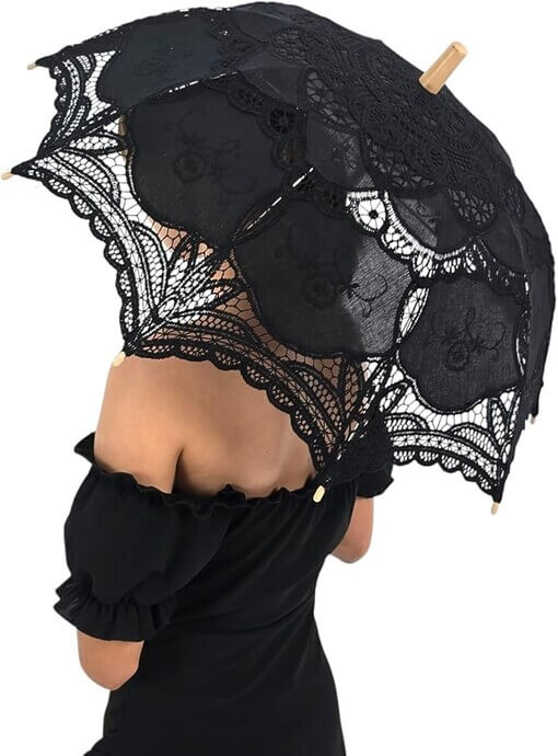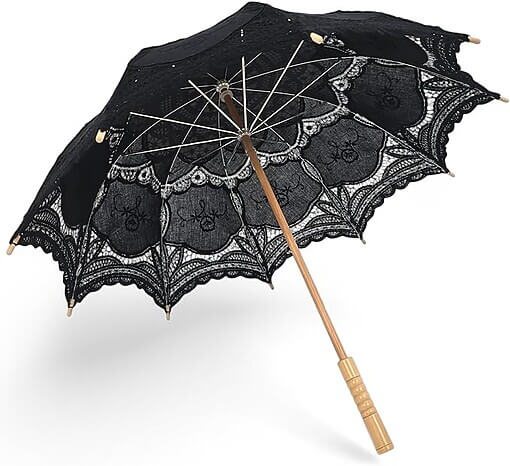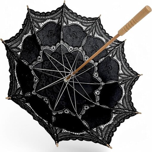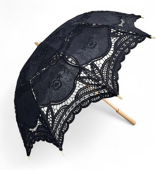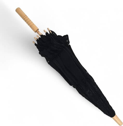UMBRELLOX Black Lace Hand Sewn Parasol With Wood Handle